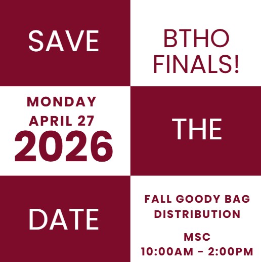 It’s goody bag time! Spring 2026 goody bags are now available. We will be featuring a reusable Texas A&M tote bag that is great for beach trips or shopping, a Texas A&M beach towel, pennies for Sully, and loaded with snacks to help your Aggie BTHO finals! Orders will close on Friday, April 10, 2026. You can order at our next club meeting or mail your order form and payment to the address on the order form. Only 60 goody bags will be available, so don’t miss out! 👍#BTHOfinals